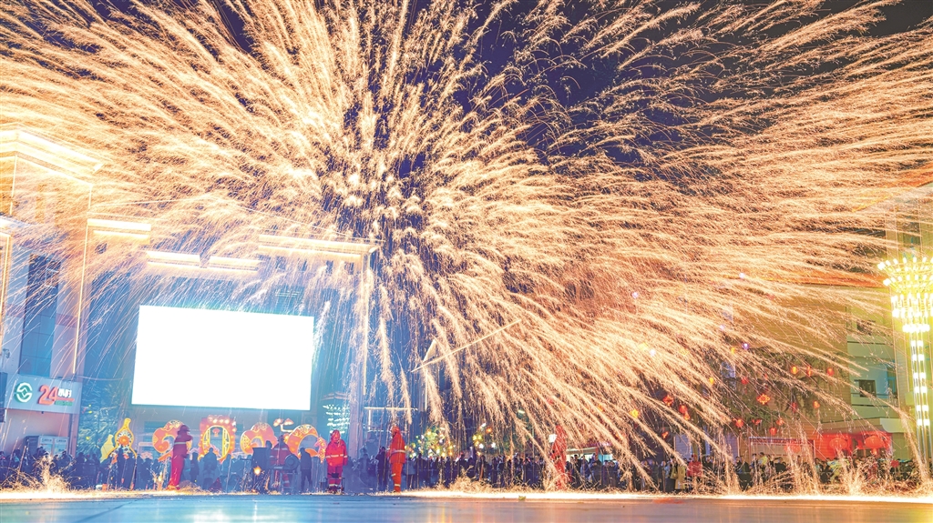 寧陜縣中心廣場(chǎng)打鐵花表演 楊穩(wěn) 攝