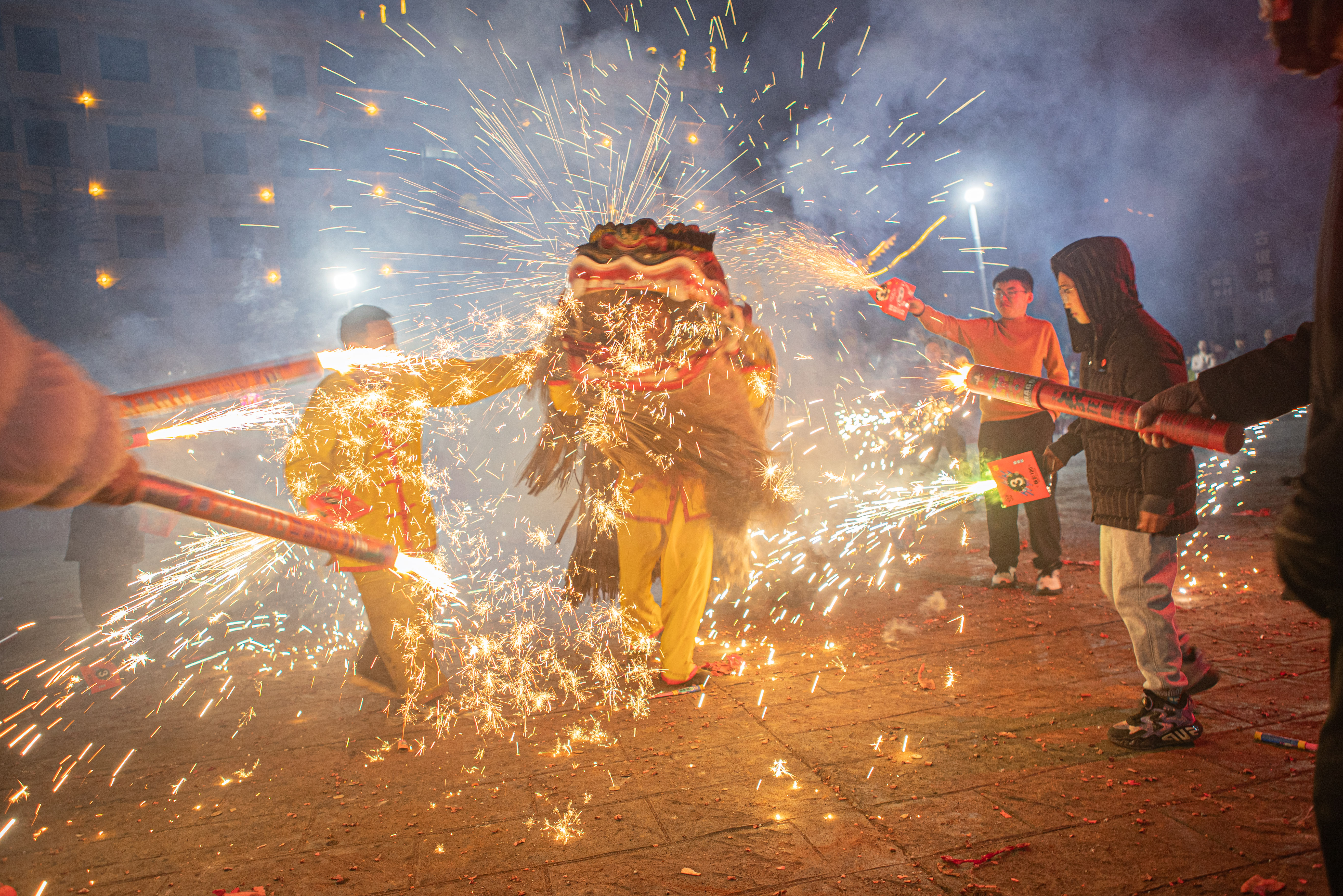 3月2日,漢陰縣雙河口鎮(zhèn)舉辦民俗非遺火燒獅子活動(dòng)。尹正軍 攝