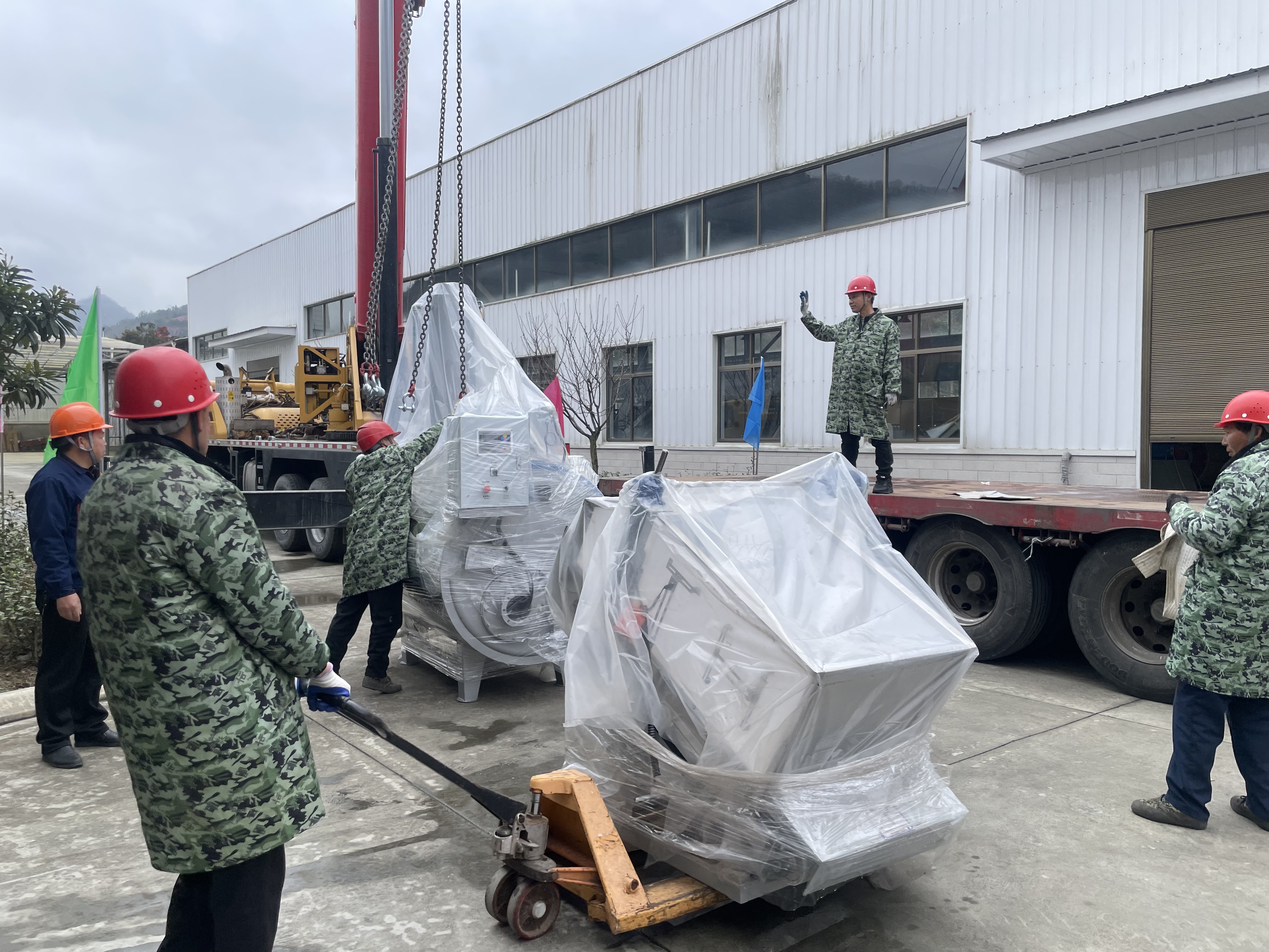 走進(jìn)平利硒地抹茶茶業(yè)有限公司廠區(qū),一派繁忙景象映入眼簾:滿載設(shè)備的大型貨車緩緩駛?cè)耄踯嚀]臂起吊,工人們協(xié)同搬運(yùn),一件件精密設(shè)備被精準(zhǔn)定位。從入場指引到吊裝作業(yè),再到設(shè)備擺放,各環(huán)節(jié)環(huán)環(huán)相扣、井然有序。