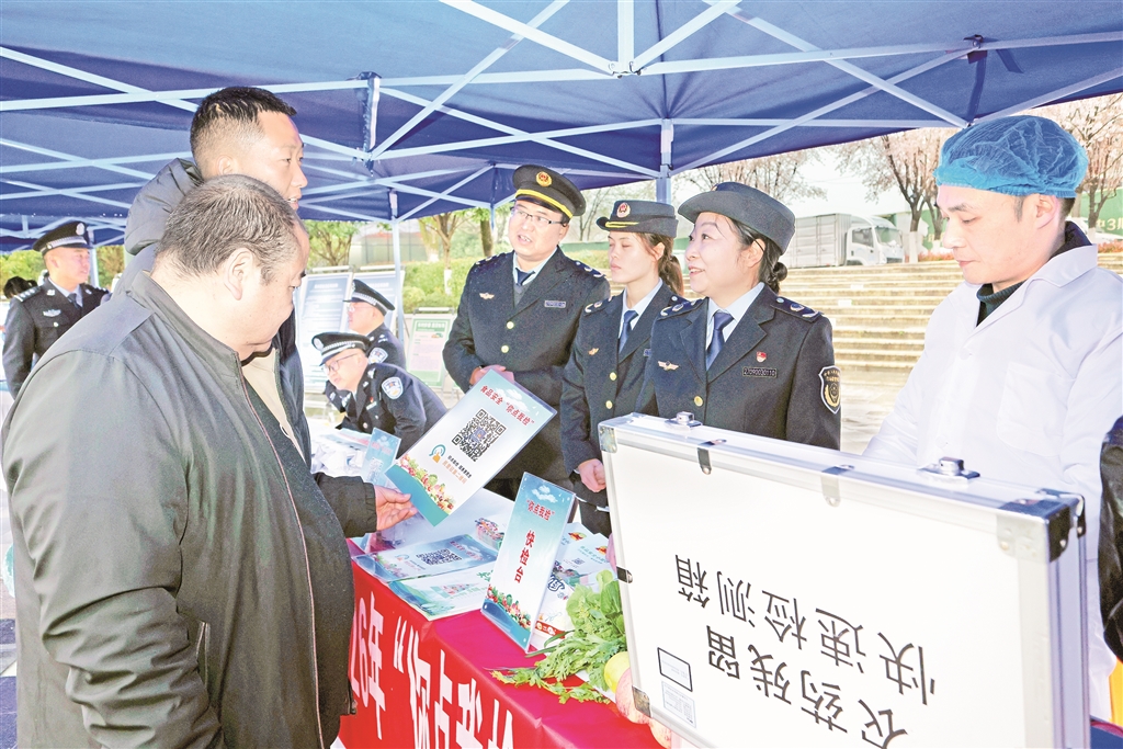 3月14日,在2026年陜西省“3·15”國際消費(fèi)者權(quán)益日主題活動暨安康市“3·15”集中宣傳活動中,市場監(jiān)管執(zhí)法人員正在宣傳講解農(nóng)殘監(jiān)測。