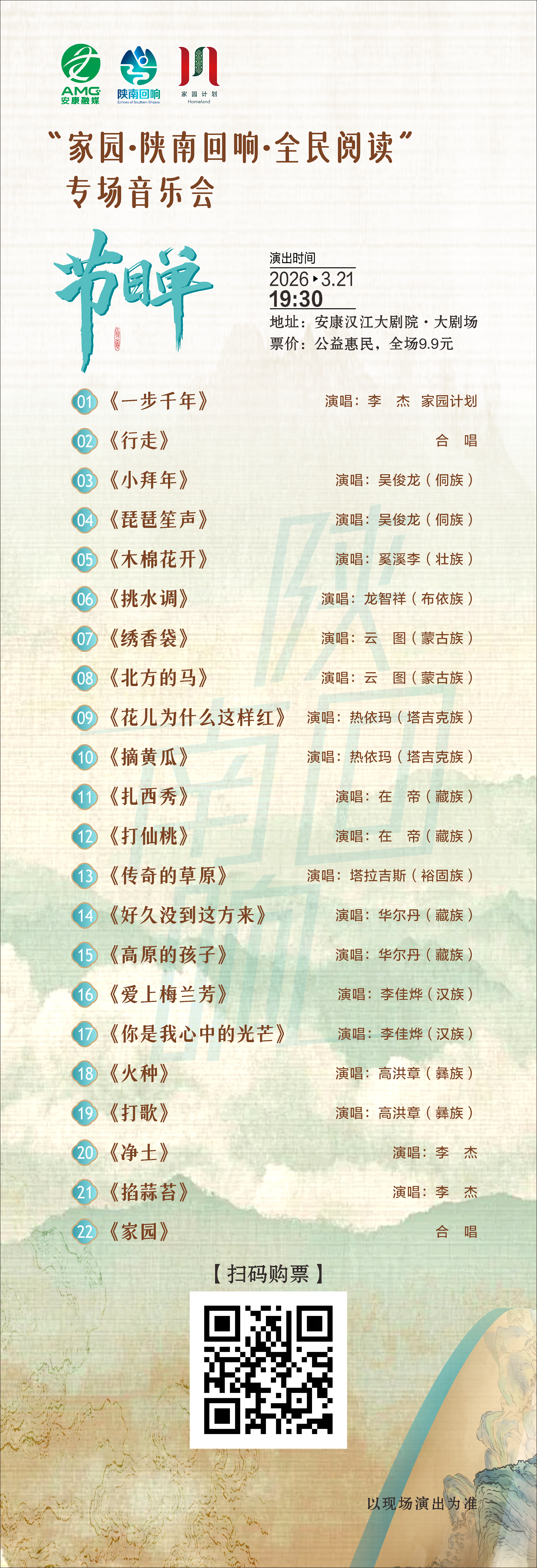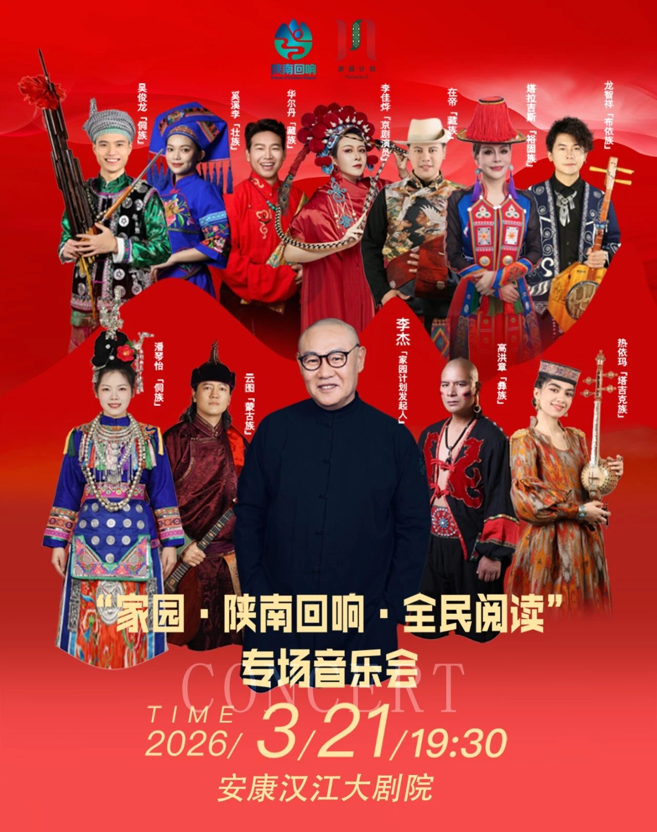 音樂是流動的家園,歌聲是永恒的閱讀。3月21日周六夜晚,讓我們相約漢江大劇院,聽各族天籟與陜南回響的交融,在文字與旋律的交織中,聽見安康,讀懂家園。