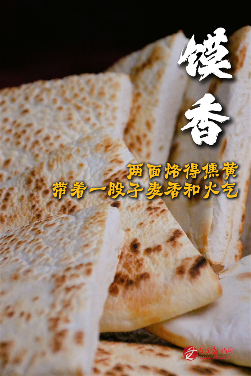 安康的牙牙兒饃是發(fā)面的。發(fā)面,在北方多用于蒸饅頭、包子,用來打饃且泡在湯里吃的,似乎不多見。安康人卻偏偏這么做了。面粉加了酵母,醒得恰到好處,不能太酸,也不能太生,揉成團(tuán),搟成圓,在鏊子上烙?;鸷蛞m中,兩面烙得焦黃,帶著些許褐色的斑點(diǎn),像是虎背上的花紋,雖不如西安饦饦饃那般白凈,卻多了一股子麥香和火氣。