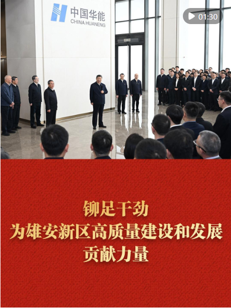 3月23日,習(xí)近平總書記來到河北雄安新區(qū),察看啟動區(qū)建設(shè)進展,考察中國華能集團有限公司,了解雄安新區(qū)建設(shè)發(fā)展情況,親切慰問入駐和在建疏解單位干部職工代表。