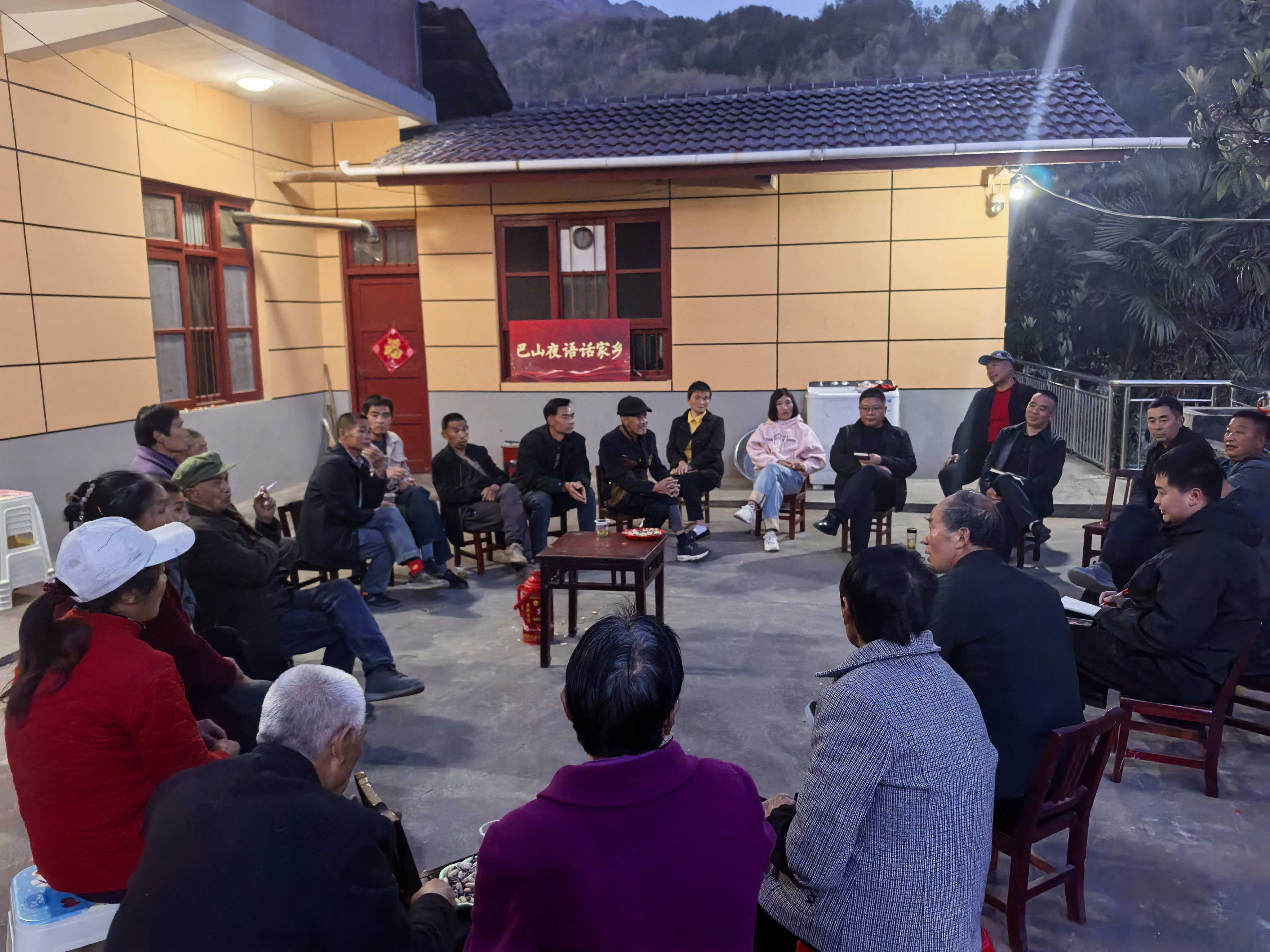 3月31日傍晚,天色漸暗,嵐皋縣南宮山鎮(zhèn)桂花村四組的一處院壩里格外熱鬧。剛從田里忙完的村民、采茶歸來的農(nóng)戶,與鎮(zhèn)村干部圍坐在一起,一場“巴山夜雨話家鄉(xiāng)”院落會就這樣開了起來。