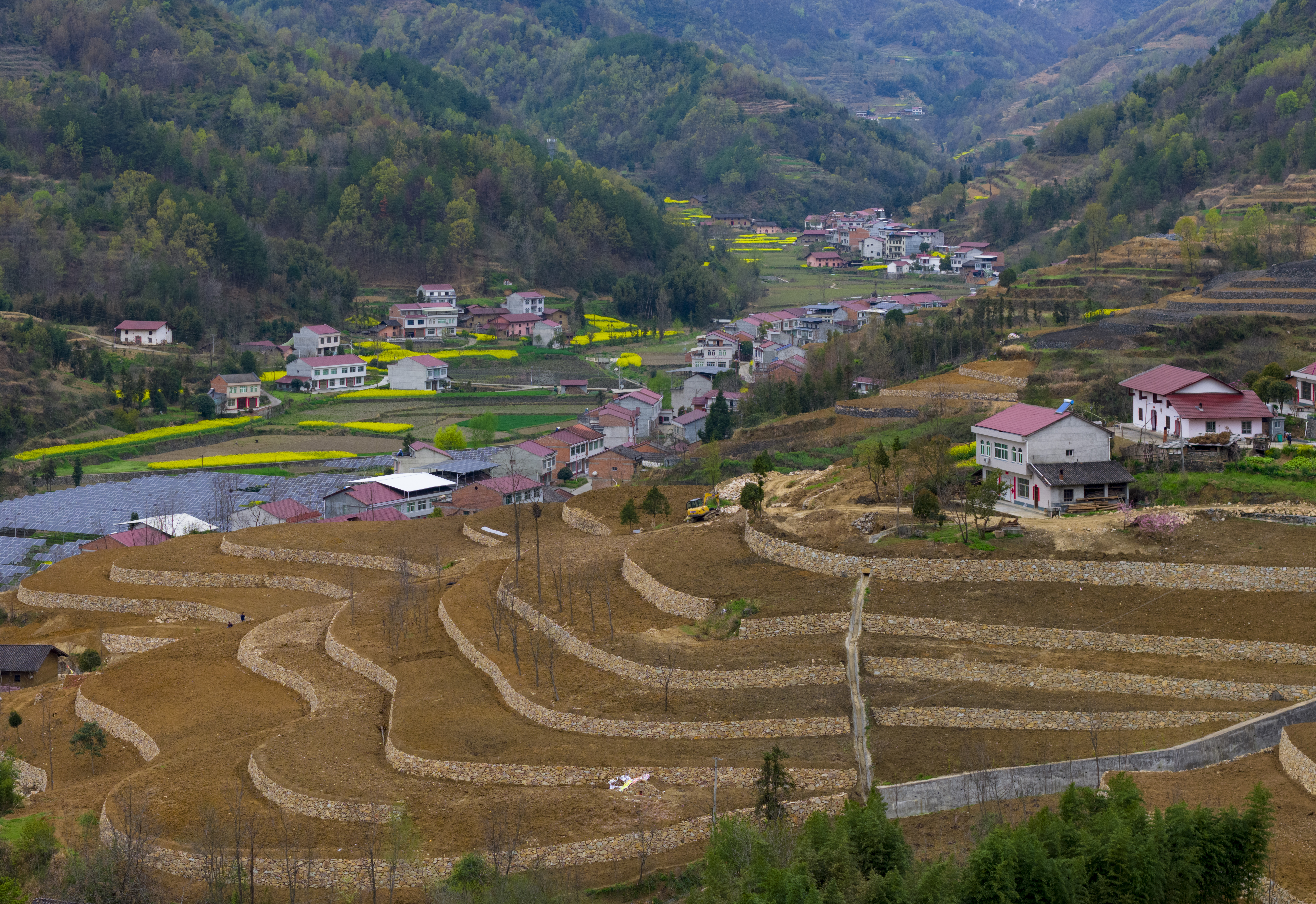漢濱區(qū)大河鎮(zhèn)搶抓春耕有利時機,組織實施坡改梯標準化農(nóng)田建設,讓山間的“石坎坎兒”成為穩(wěn)定糧油增收的“金碗碗兒”。圖為該鎮(zhèn)興紅村連片320畝標準農(nóng)田建設一角。 陳均威 攝