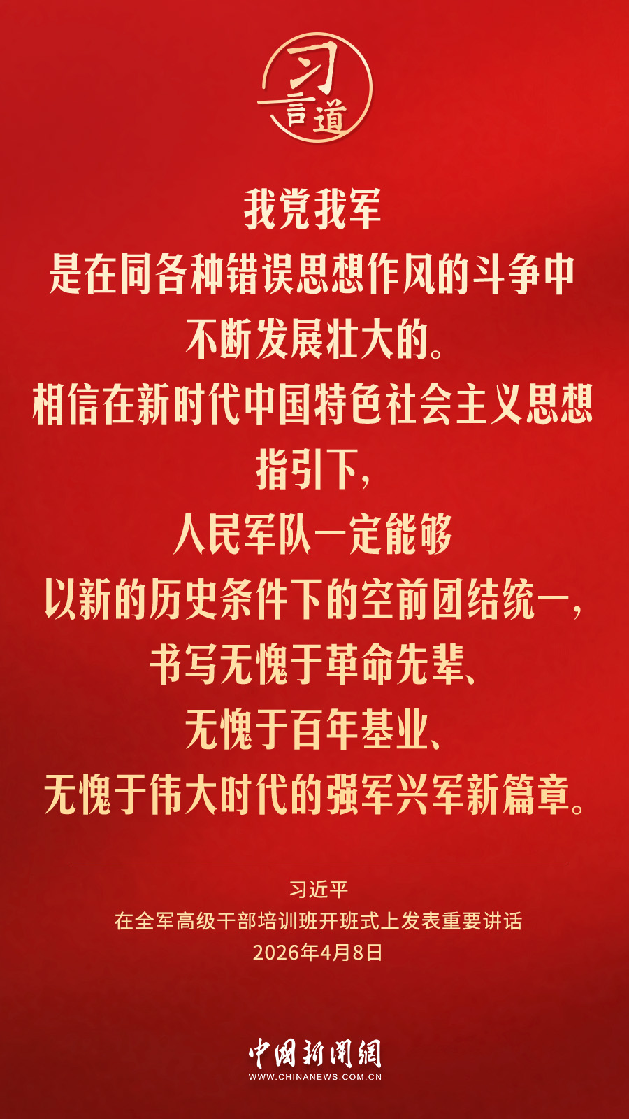 全軍高級干部培訓班8日在國防大學開班。中共中央總書記、國家主席、中央軍委主席習近平出席開班式并發(fā)表重要講話。他強調(diào)——