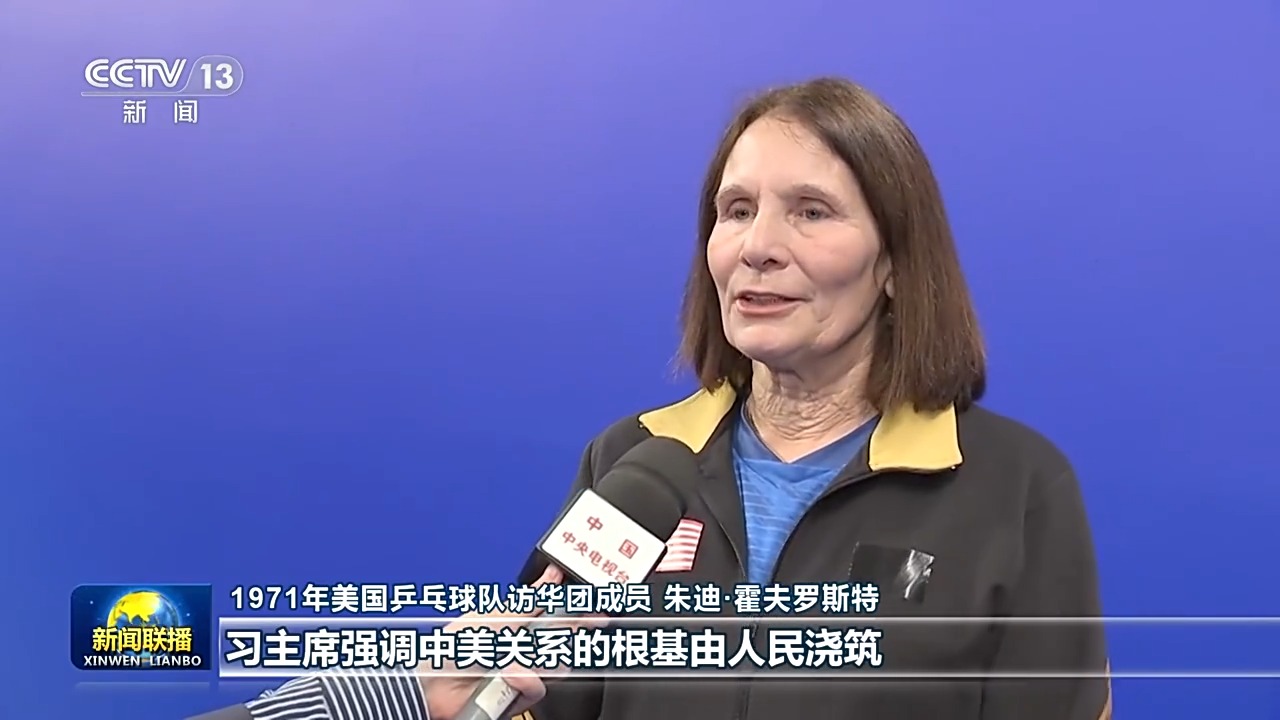 1971年美國乒乓球隊訪華團(tuán)成員 朱迪·霍夫羅斯特:習(xí)主席強(qiáng)調(diào)中美關(guān)系的根基由人民澆筑,這一點我深有感觸。在當(dāng)下,相互理解與對話比任何時候都更加重要,我也希望我們能將“乒乓外交”精神繼續(xù)傳承,在兩國人民間傳遞溫情,增進(jìn)理解。