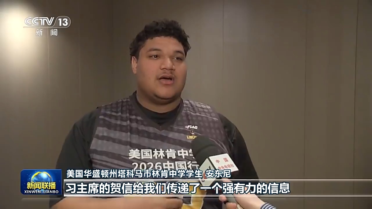 美國華盛頓州塔科馬市林肯中學(xué)學(xué)生 安東尼:習(xí)主席的賀信給我們傳遞了一個強(qiáng)有力的信息,讓我們堅信彼此學(xué)習(xí)、相互理解就能讓人心貼得更近。我要把我親身體驗所經(jīng)歷的一切,把我看到的真實的、充滿活力的中國,講給我家鄉(xiāng)的朋友們聽。
