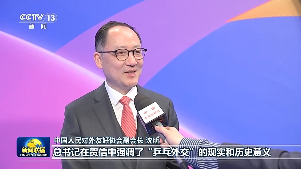 中國人民對外友好協(xié)會副會長 沈昕:總書記在賀信中強(qiáng)調(diào)了“乒乓外交”的現(xiàn)實和歷史意義,特別鼓勵兩國的青年一代他們要相知相親、攜手同行,這對中美兩國的民間交往是一個巨大的推動,也注入了溫暖的能量。