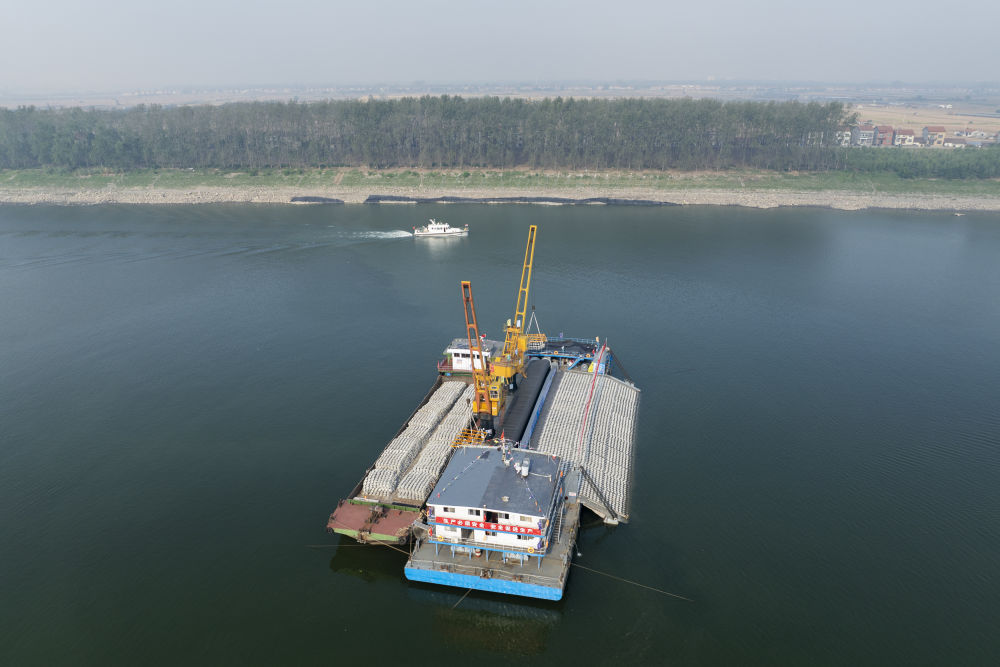 這是在湖北荊州瓦口子水道拍攝的工程施工現(xiàn)場(2024年9月26日攝,無人機照片)。當日,長江中游荊江河段航道整治二期工程全面開工。工程大幅提升長江黃金水道中游通過能力,5000噸級船舶可全年經(jīng)由荊江河段直達重慶。