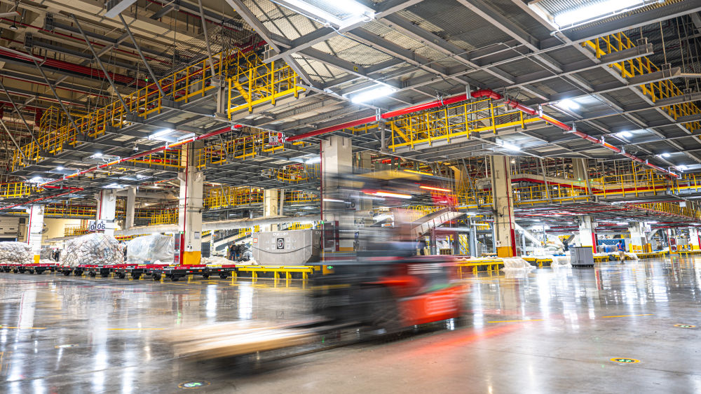 這是2025年7月11日凌晨拍攝的湖北鄂州花湖國際機場轉(zhuǎn)運中心內(nèi)景。于2022年7月建成投運的鄂州花湖國際機場,是湖北打造國內(nèi)大循環(huán)節(jié)點和國內(nèi)國際雙循環(huán)戰(zhàn)略鏈接的重要支撐。依托鐵水聯(lián)運專用線,武漢陽邏港可連接中歐班列與鄂州花湖國際機場,服務范圍覆蓋120多個國家和地區(qū)200余個城市。